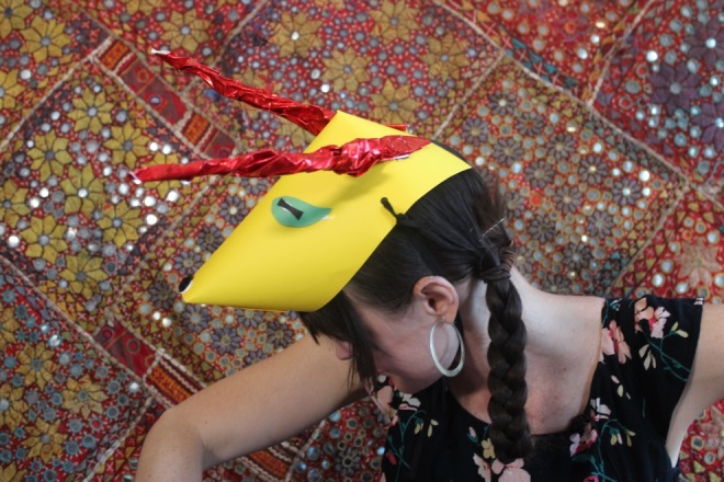 - Adults will need to do the stapling and tying of elastic. Once complete, the headdress is very secure and should stay put on all students, even with lots of moving and acting out of characters. Students faces will be visible, even though they are wearing a mask!